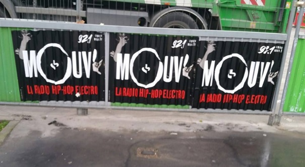 Campagne d'affichage très urbaine pour Mouv', en mars 2015 (photo personnelle)