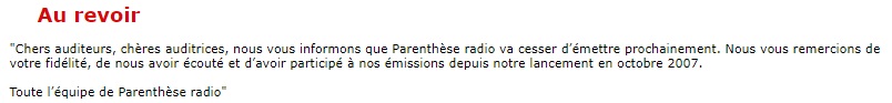 2009, Parenthèse Radio est en redressement judiciaire, avec des audiences plutôt