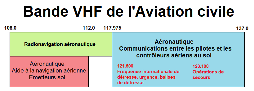 VHF dédiée se situe entre 108 et 137 MHz, soit juste après celle de